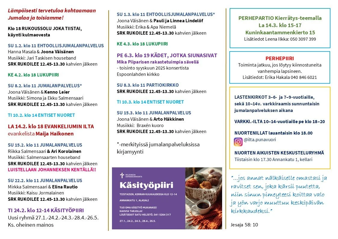 Helmikuun toimintakalenteri Helmikuu 2026 Ilta PisteFebruary 3, 2026 Facebook0 Twitter LinkedIn0 Reddit Tumblr Pinterest0 0 Likes